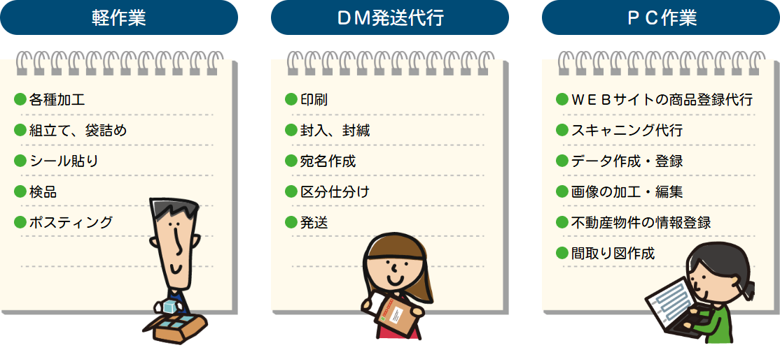ネットショップや加工業等、継続的な業務を外注したい企業様に最適なサービスです。